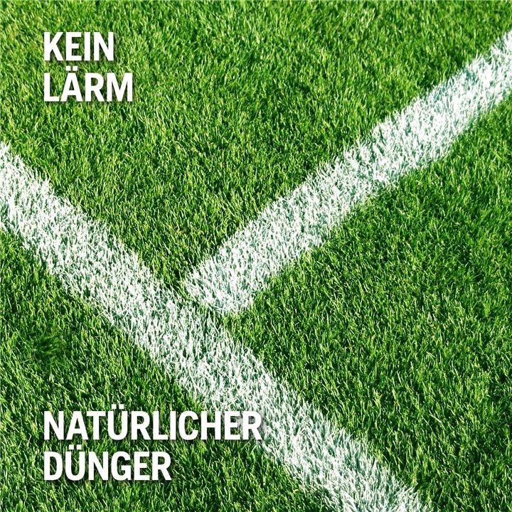 - Das Gras wird nur um wenige Millimeter geschnitten und bleibt als nahezu unsichtbares Schnittgut auf der Rasenfläche liegen.